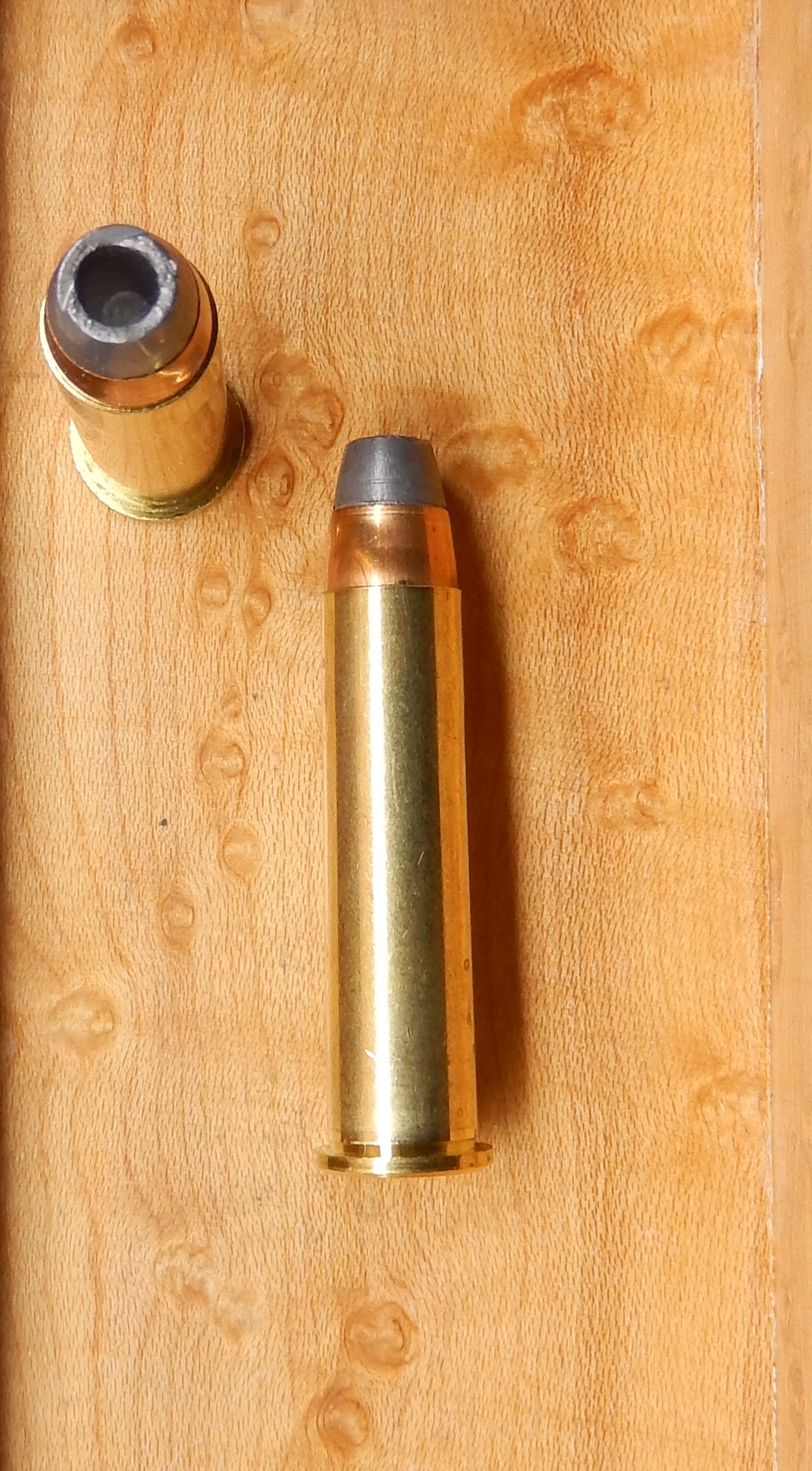 Formed from .375 Win for strength, the .375 SuperMag’s 1.6″ case allows for very powerful yet soft recoiling powerhouse silhouette and hunting cartridge. While it is a little known caliber, there seems to be a current resurgence in its popularity. 185g Soft Nose Hollow Point running 1900FPS with 1482Ft-Lbs of energy.