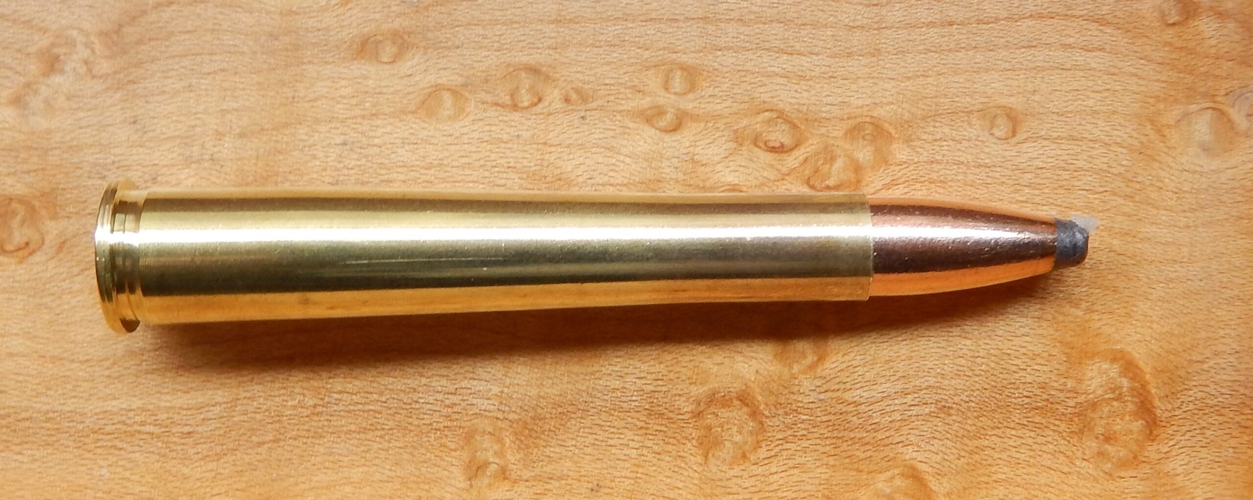 Hard to find 8x58R Sauer ammunition. 175g SP proper .318″ not the more common 8mm bullet of today.